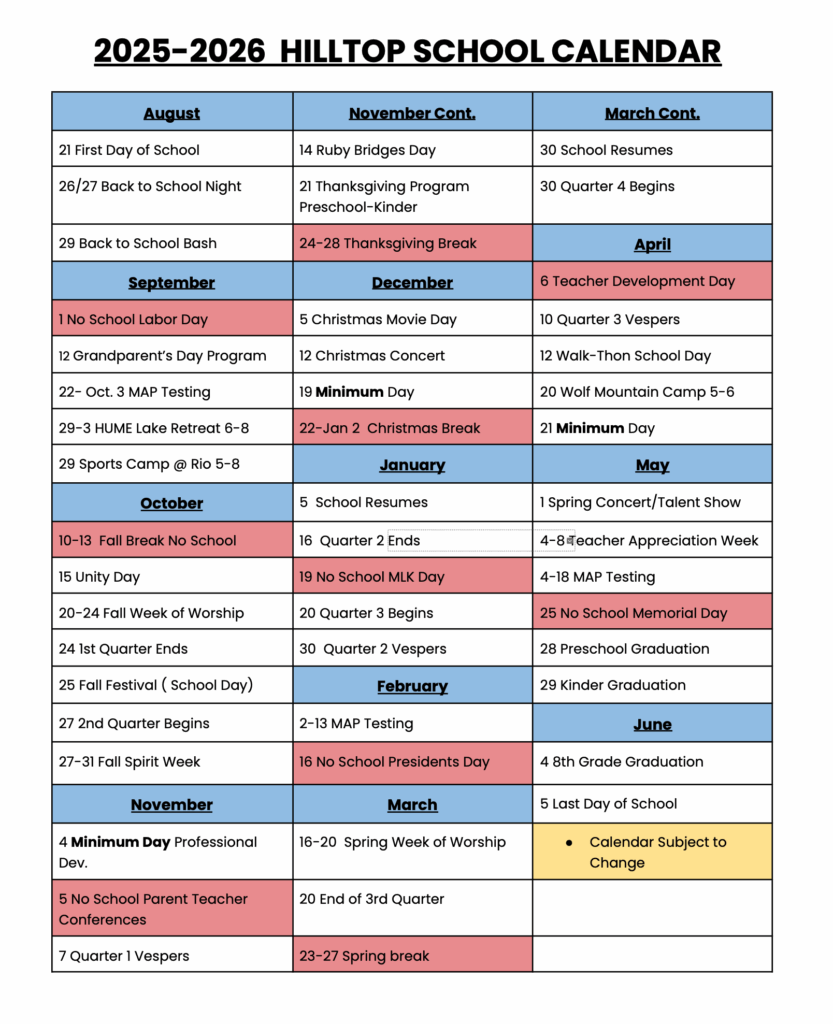 Call 925-261-7556 today for a tour of Hilltop Christian School!